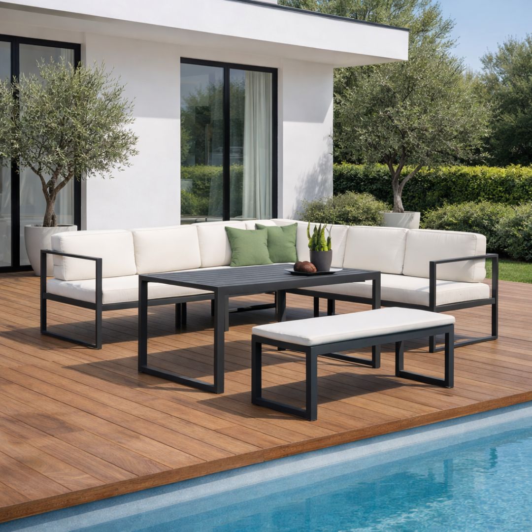 Adel-30 Garden Corner Set, made in Spain: a complete and multi-functional solution for outdoor lounging and dining.