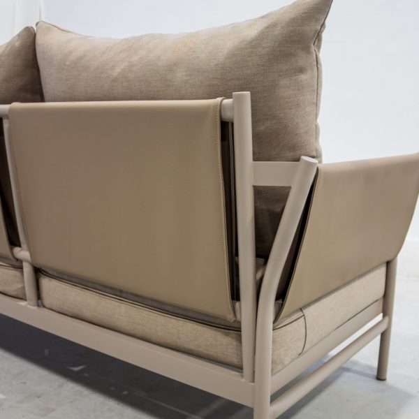 The Arenas-8 Designer Outdoor Set includes a 3-seater sofa, 2 individual armchairs, and a coffee table, ideal for those seeking style, comfort, and durability. Product manufactured in Spain with high-quality materials.
