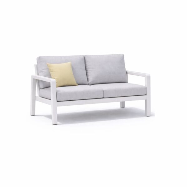 This elegant 2-seater CARMEL outdoor sofa stands out for its reinforced aluminium structure and high-quality Spanish craftsmanship. Designed to optimise space on terraces and balconies, it guarantees total resistance to corrosion and exceptional ergonomic comfort, while maintaining a modern, lightweight, and durable aesthetic.