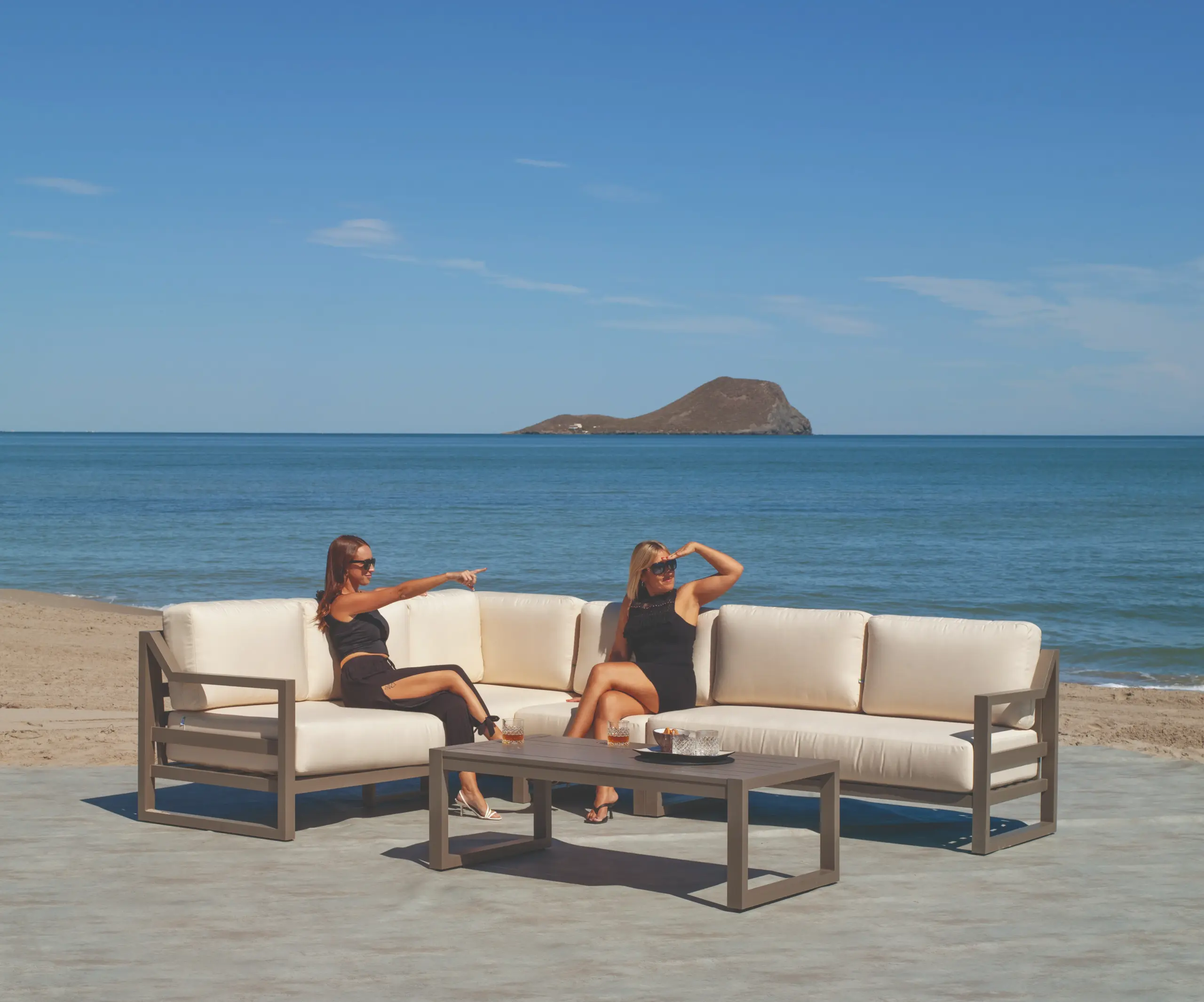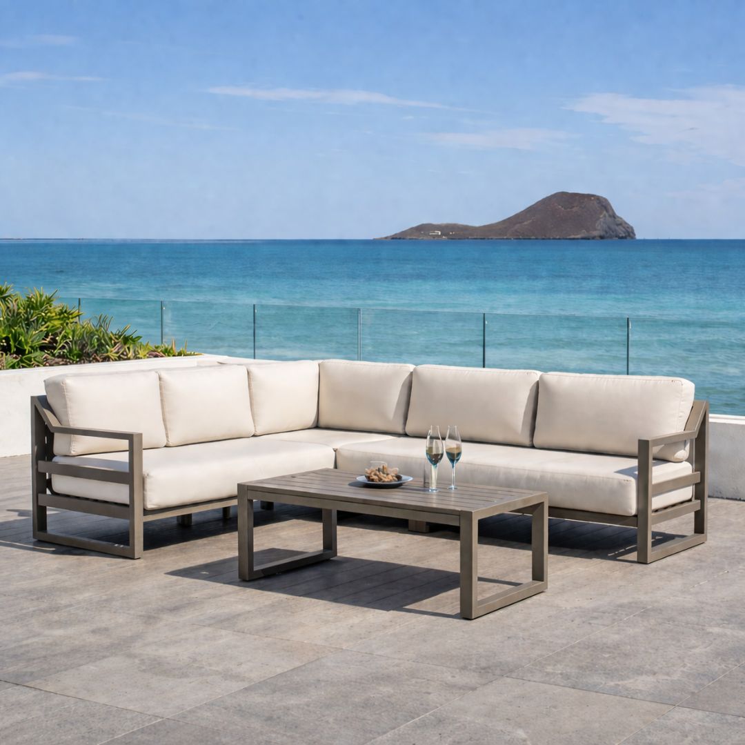 Dublian-29 Garden Corner Set, manufactured in Spain with a large capacity for spacious terraces. Modular aluminium set.