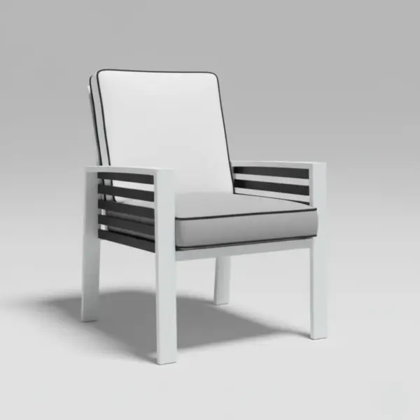 The Farah-3 chair is a sophisticated and resilient choice for any outdoor space. Its robust aluminium structure guarantees durability and stability, while its elegant design brings a modern touch to terraces, gardens, and balconies.