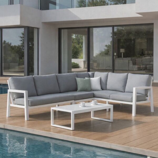 Hublot-28 Garden Corner Set: a modular aluminium design featuring 2 and 3-seater sofas and a coffee table.