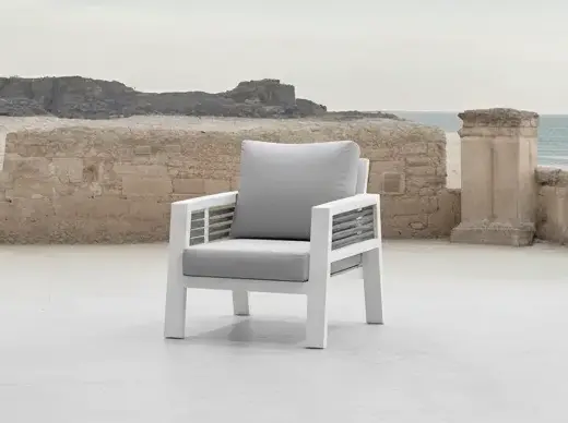 Enjoy maximum robustness and exceptional comfort with the Neptuno collection. Manufactured in Spain with an imposing aluminium structure, this family of sofas and armchairs is designed to endure. Its generous cushioning invites you to relax. Create your perfect set by choosing between the individual armchair or the 2 and 3-seater sofas.