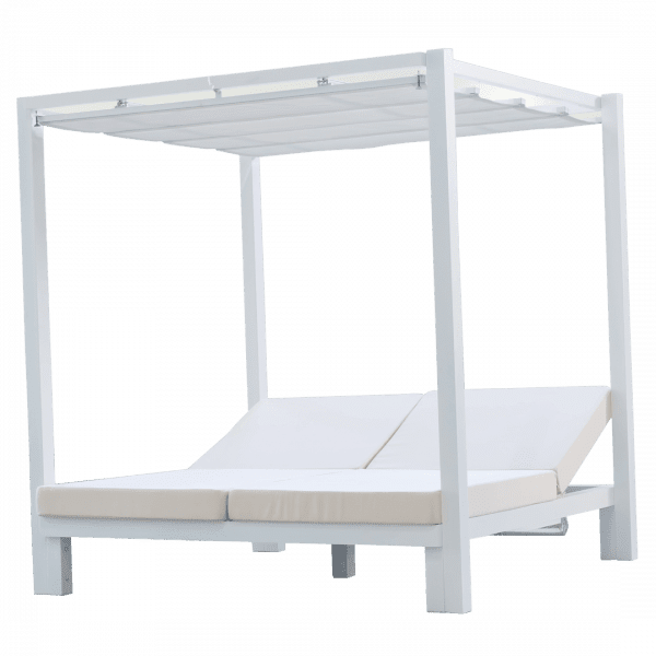 The Oxaca-85 Balinese bed is a sophisticated and durable option for enjoying the outdoors. Its retractable aluminum laminate roof allows you to adjust the shade and light passage as you prefer. Its robust structure ensures a long service life.