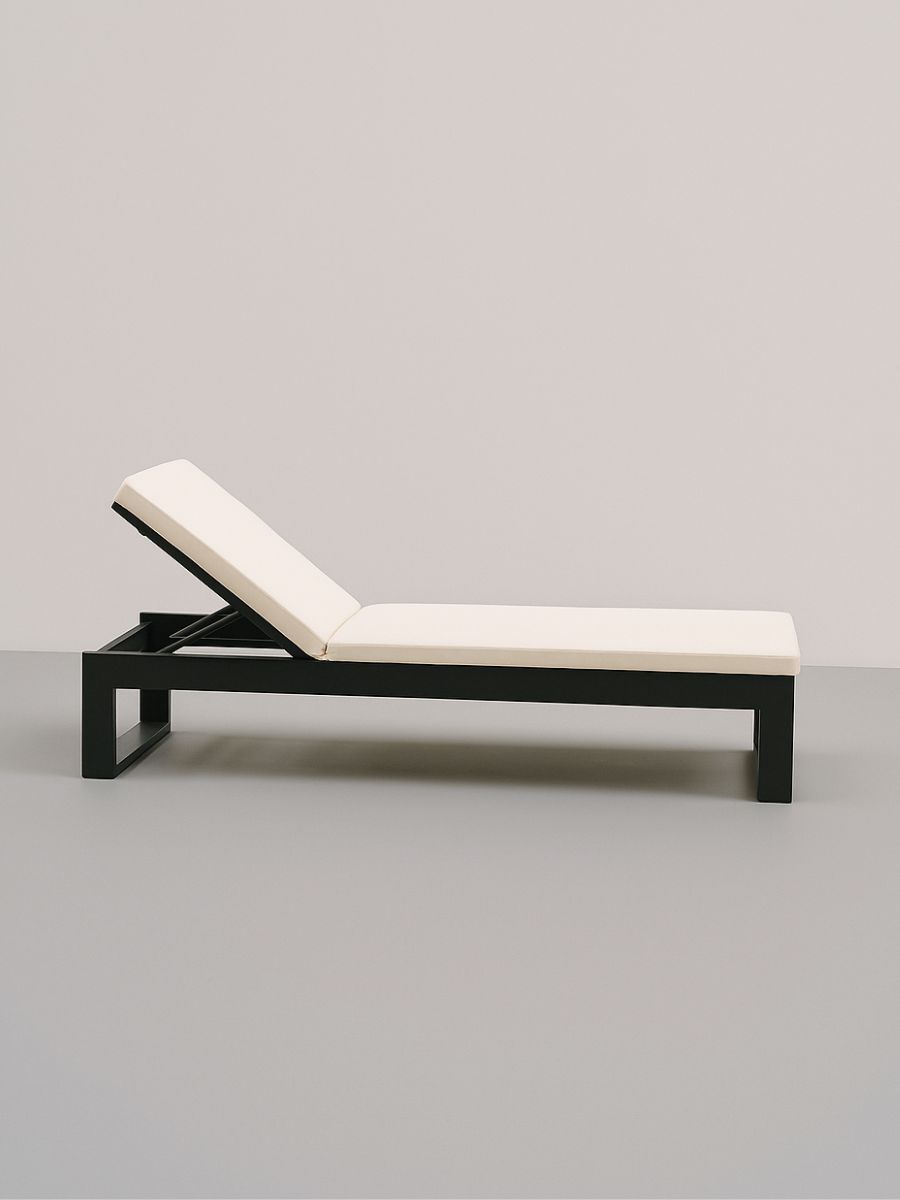 The Borum sun lounger is crafted with a high-strength aluminium structure, welded to ensure durability against the weather. Its minimalist design, featuring clean lines and a robust profile, marries elegance with solidity in outdoor environments.
