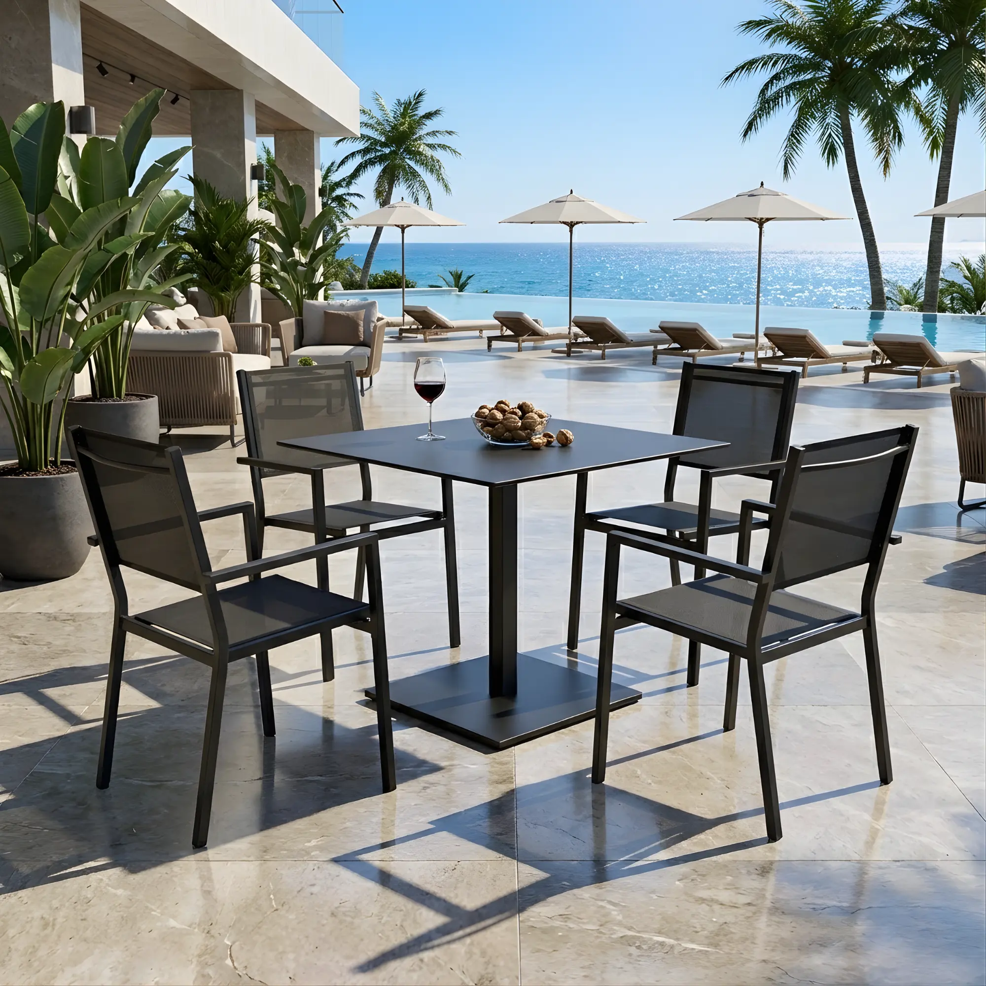 The Brisol 90 HPL table is ideal for hospitality, thanks to its moisture-resistant HPL surface and its modern, functional design. Perfect for outdoor terraces and bars, it offers durability and easy maintenance, ensuring a long lifespan without losing its sophisticated aesthetic.