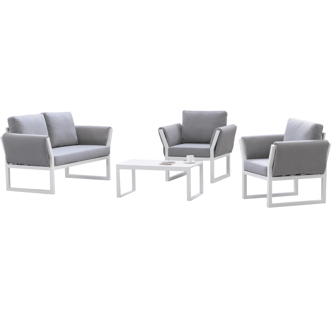 • Complete Lounge Set: A comprehensive solution including 1 x 2-seater sofa, 2 x single armchairs and 1 x coffee table, creating a harmonious and functional outdoor environment.