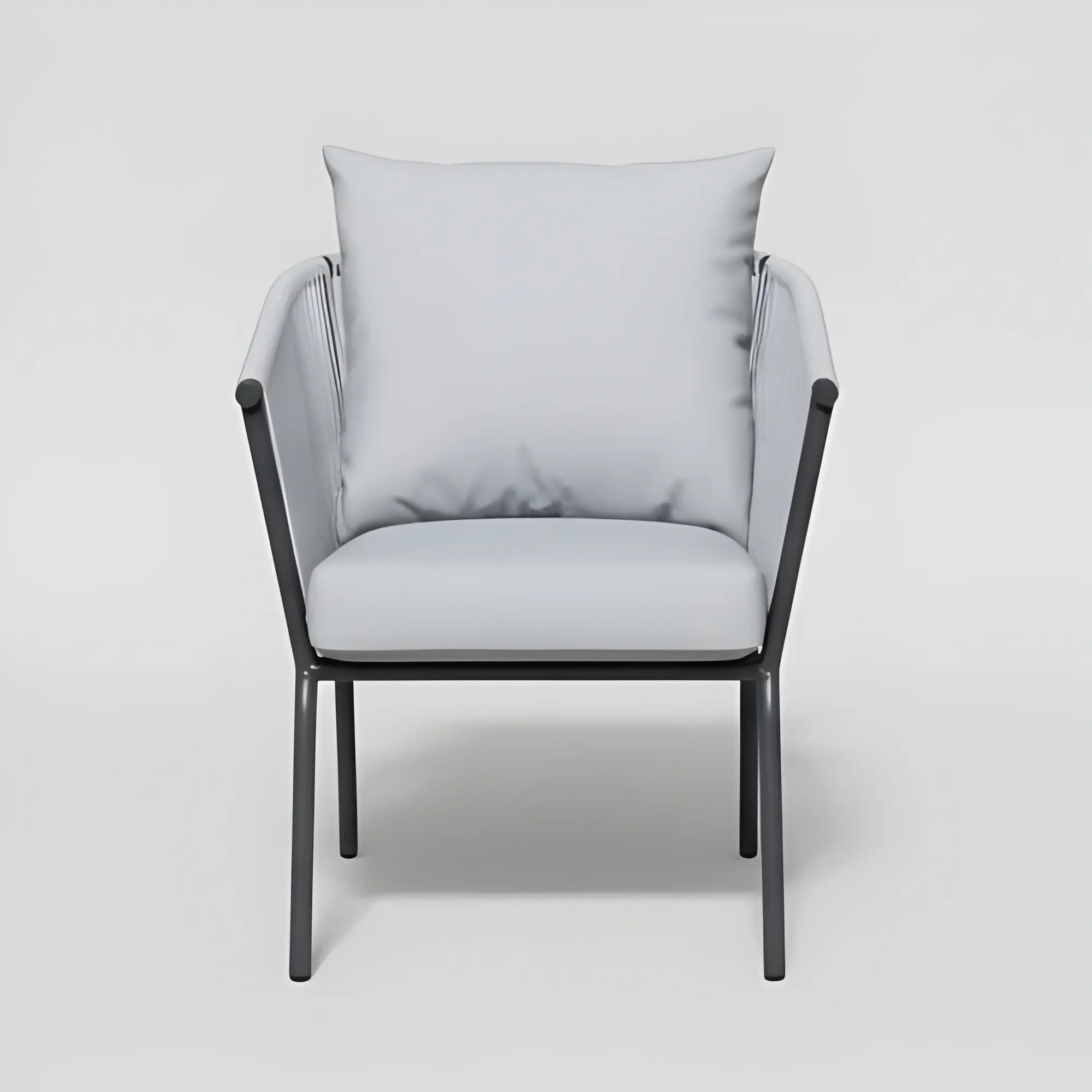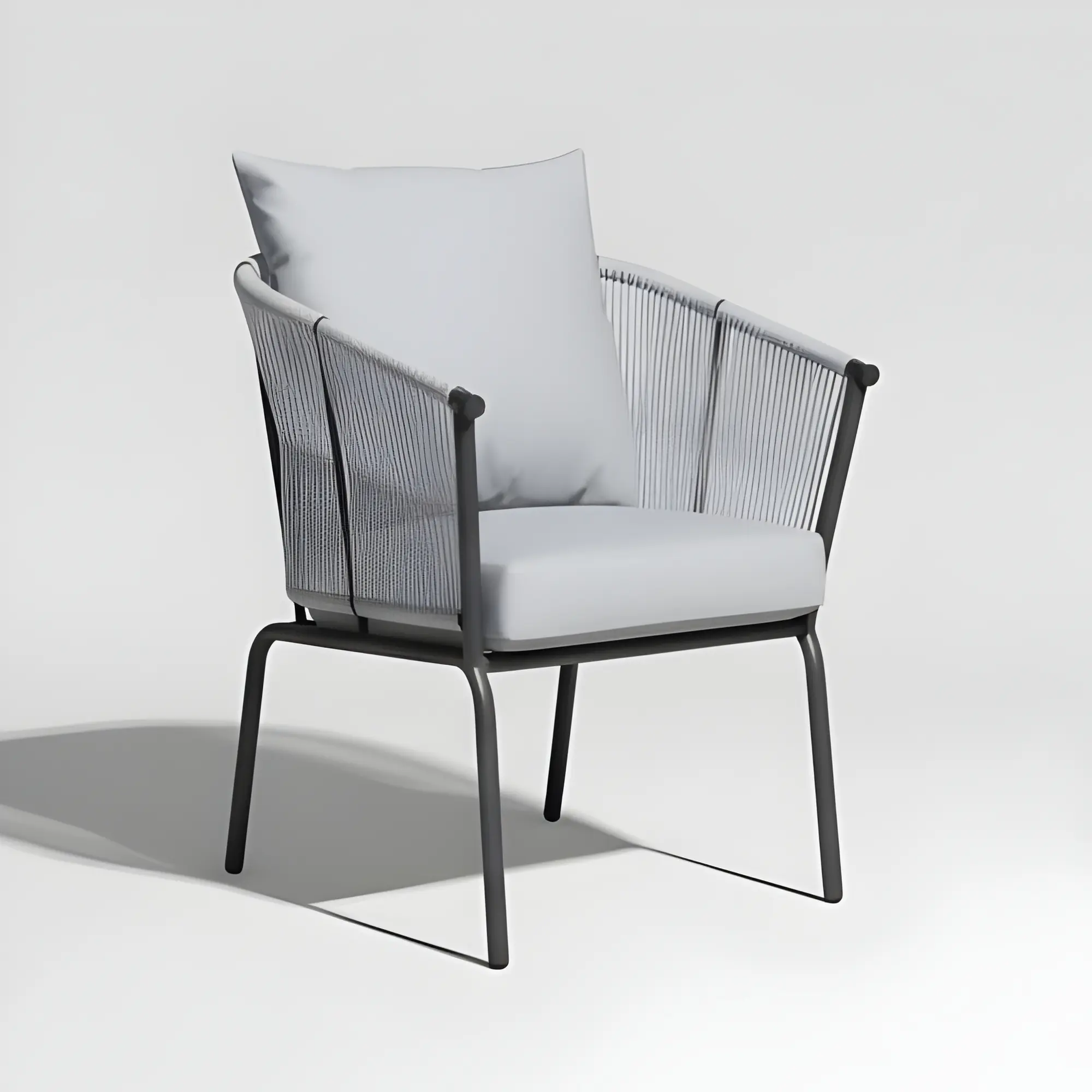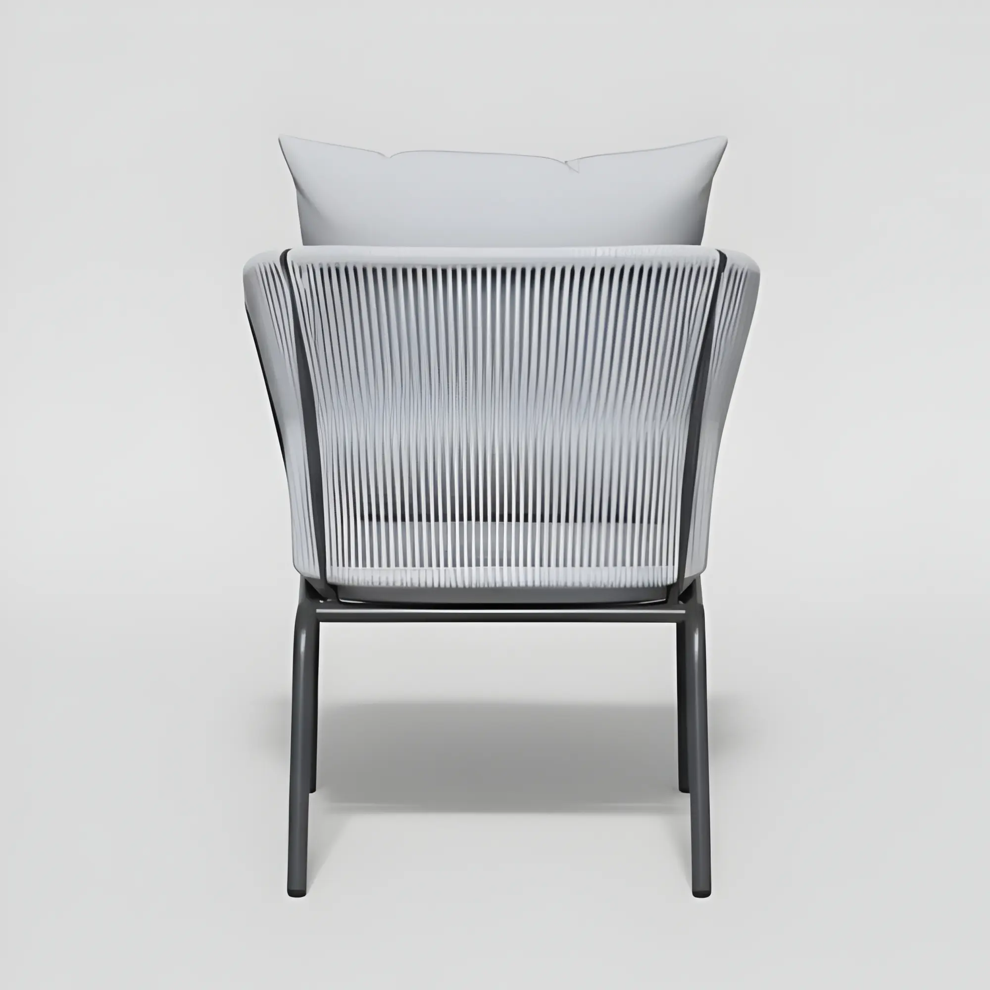 Completely made in Spain, this exclusive chair features an aluminium frame carefully wrapped by experts with a rope that enhances its aesthetic. The high-quality rope not only gives the chair an elegant and modern look but also guarantees exceptional durability over time.