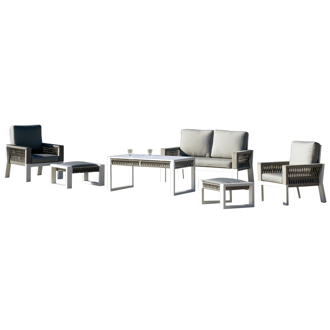 The Estambul-7 garden set is perfect for those seeking a modern and elegant design for their outdoor space. Manufactured in Spain with high-quality nautical rope, it combines comfort and durability.