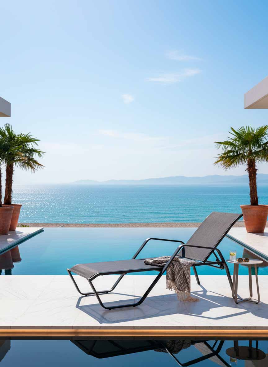 High-quality Textilene provides a comfortable and breathable surface, adapting perfectly to the needs of guests. Furthermore, its reclining backrest allows the position to be adjusted according to individual preferences, offering personalised comfort. With a modern and functional design, the IMPERIAL XL not only enhances the aesthetics of any environment but also ensures an unparalleled relaxation experience.