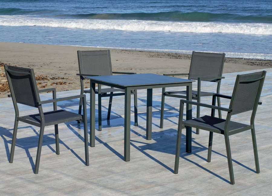 The Margot HPL table and chairs set combines a resistant HPL top with a modern and elegant design. Ideal for outdoor or indoor use, this set offers durability, comfort, and style, becoming a perfect choice for any space.