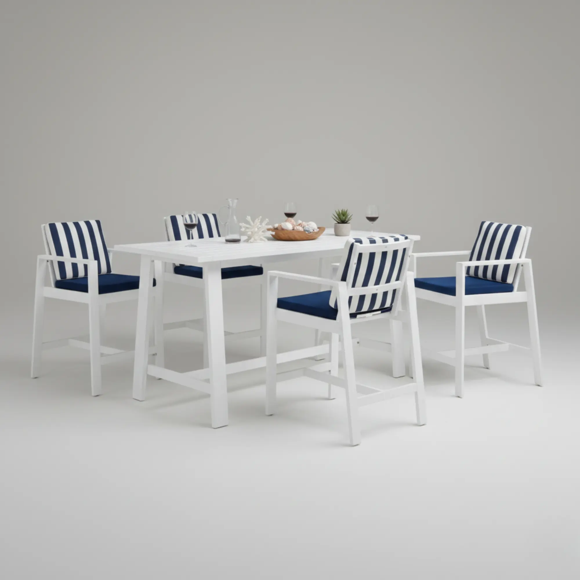 The Marlet 180 high bar table is perfect for creating a sophisticated and modern outdoor atmosphere. With a high-quality aluminium structure, its contemporary design adapts to both terraces and gardens. Its generous size makes it ideal for outdoor meetings and events, offering a durable surface resistant to weather conditions.