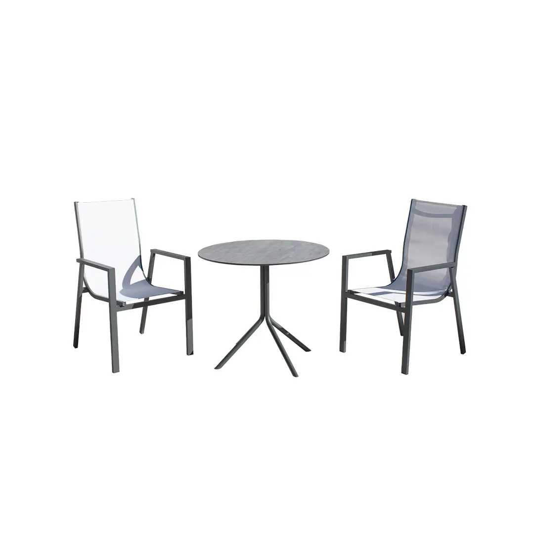 The MISTRAL bar terrace table and chairs set has been specifically designed for hospitality environments that demand both functionality and style. Manufactured in Spain from premium-grade aluminium, this table stands out for its exceptional durability and resistance.