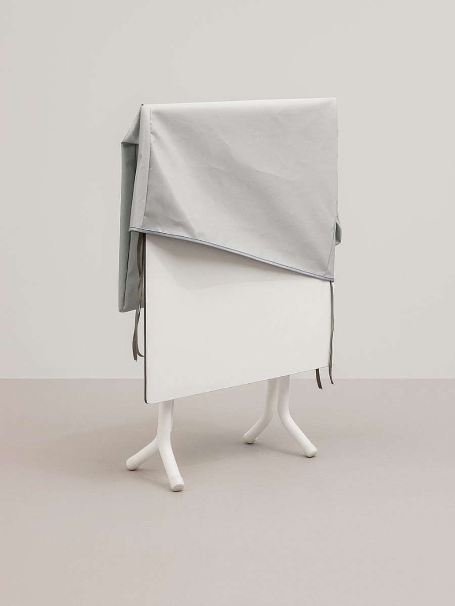 Designed to cover the table once folded, adapting easily and ensuring the stability of the furniture during vertical storage.