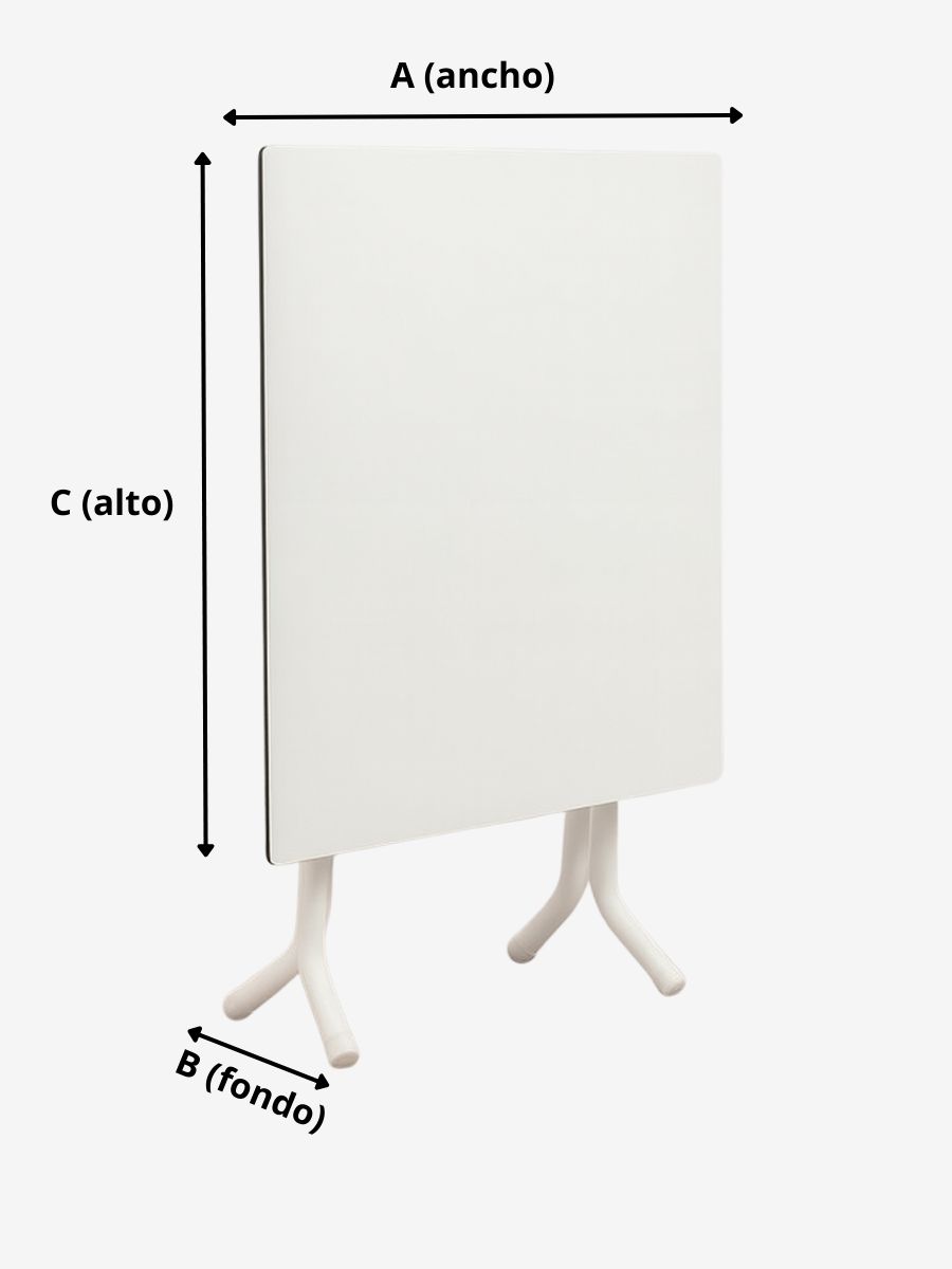 Measure the Depth (B): Measure the total depth of the folded table, from front to back. Includes any protruding part (such as the folding mechanism).