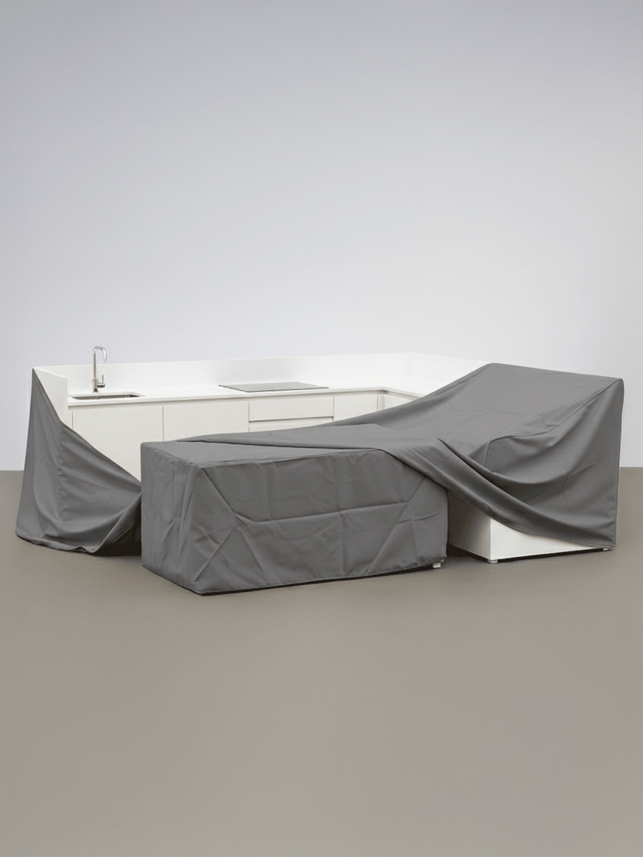 Our bespoke outdoor kitchen covers are designed to offer maximum protection against rain, sun, dust, and temperature fluctuations. Each cover is manufactured to the exact dimensions of your kitchen or barbecue unit, ensuring a perfect fit that prevents loose fabric and water ingress.