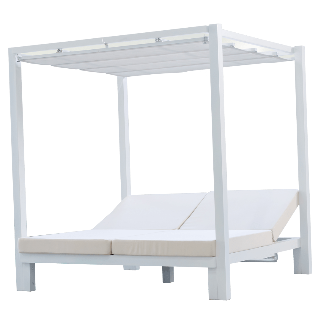 The Oxaca-85 Balinese bed is a sophisticated and durable option for enjoying the outdoors. Its retractable aluminum laminate roof allows you to adjust the shade and light passage as you prefer. Its robust structure ensures a long service life.