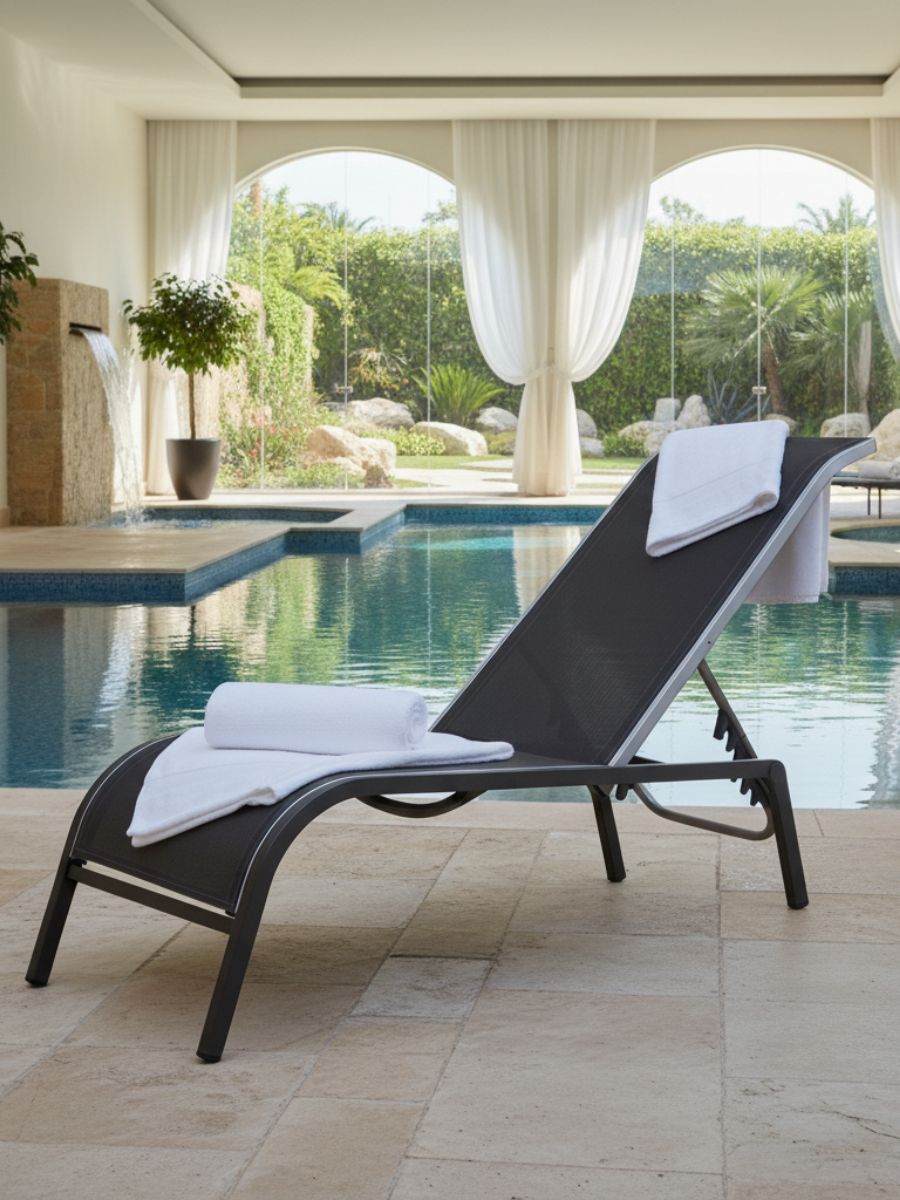 To keep the BRESCIA sun loungers in optimum condition, clean them regularly with a damp cloth and mild soap, avoiding abrasive products that could damage the Textilene or the aluminium.