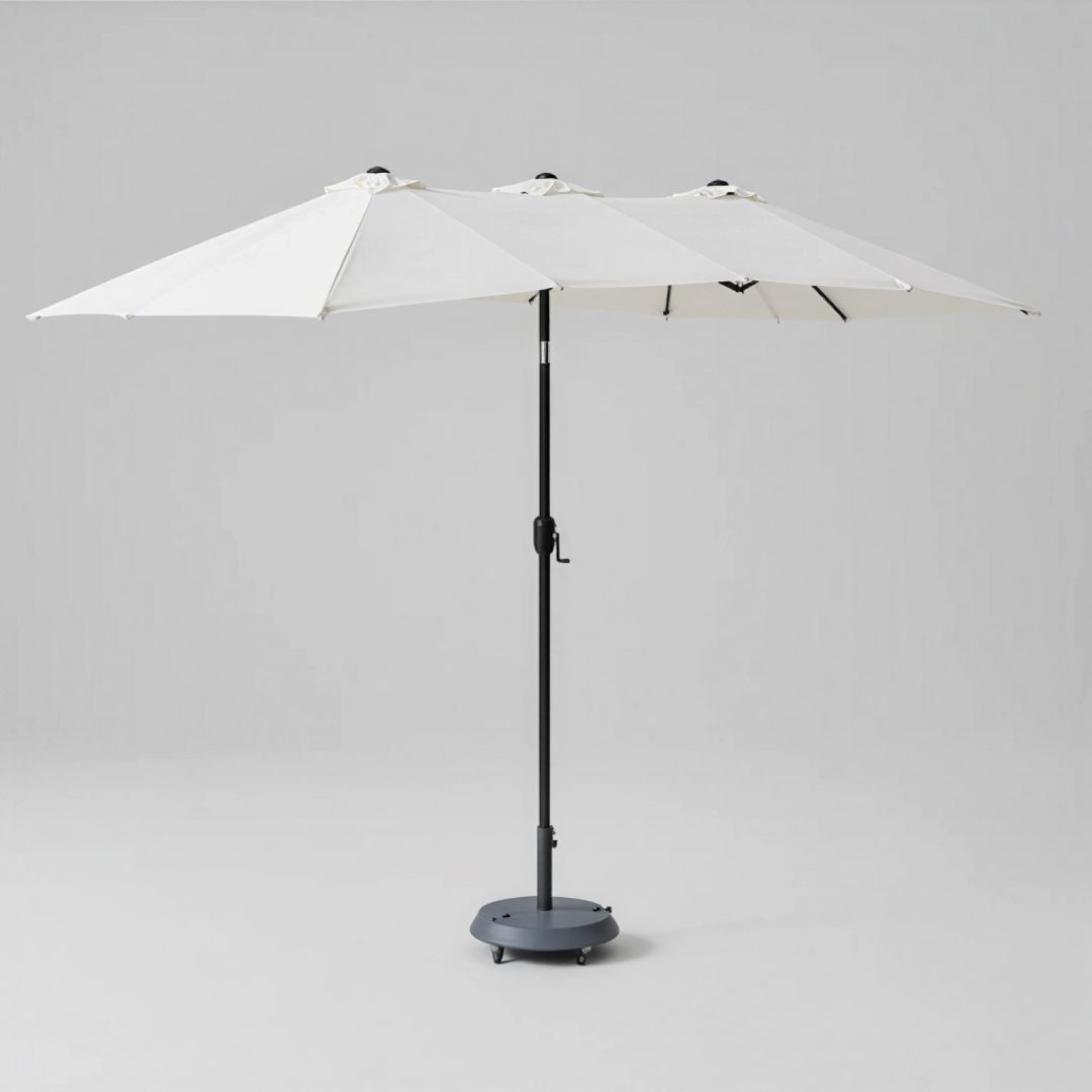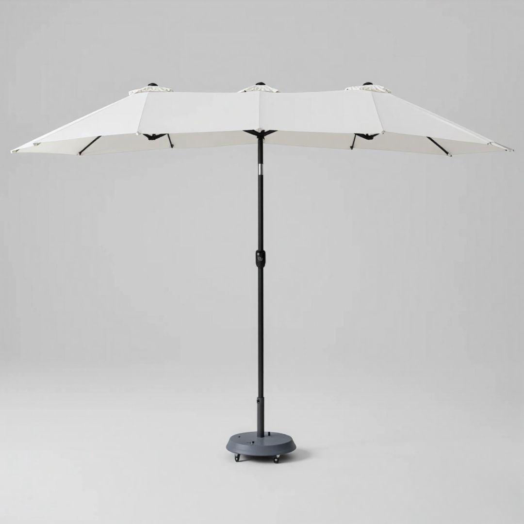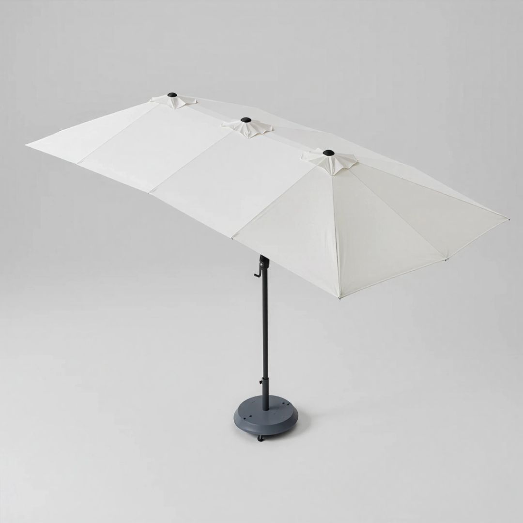 The Trébol XXL double parasol is designed to provide exceptional coverage in large gardens, patios, or terraces, making it an ideal solution for those seeking shade, comfort, and style in a single element. Its aluminium structure stands out for its lightness and durability, easily resisting prolonged exposure to sun and moisture. Thanks to its double canopy surface, this parasol offers a vast and continuous shaded area, perfect for protecting multiple tables or a complete set of outdoor sofas.
