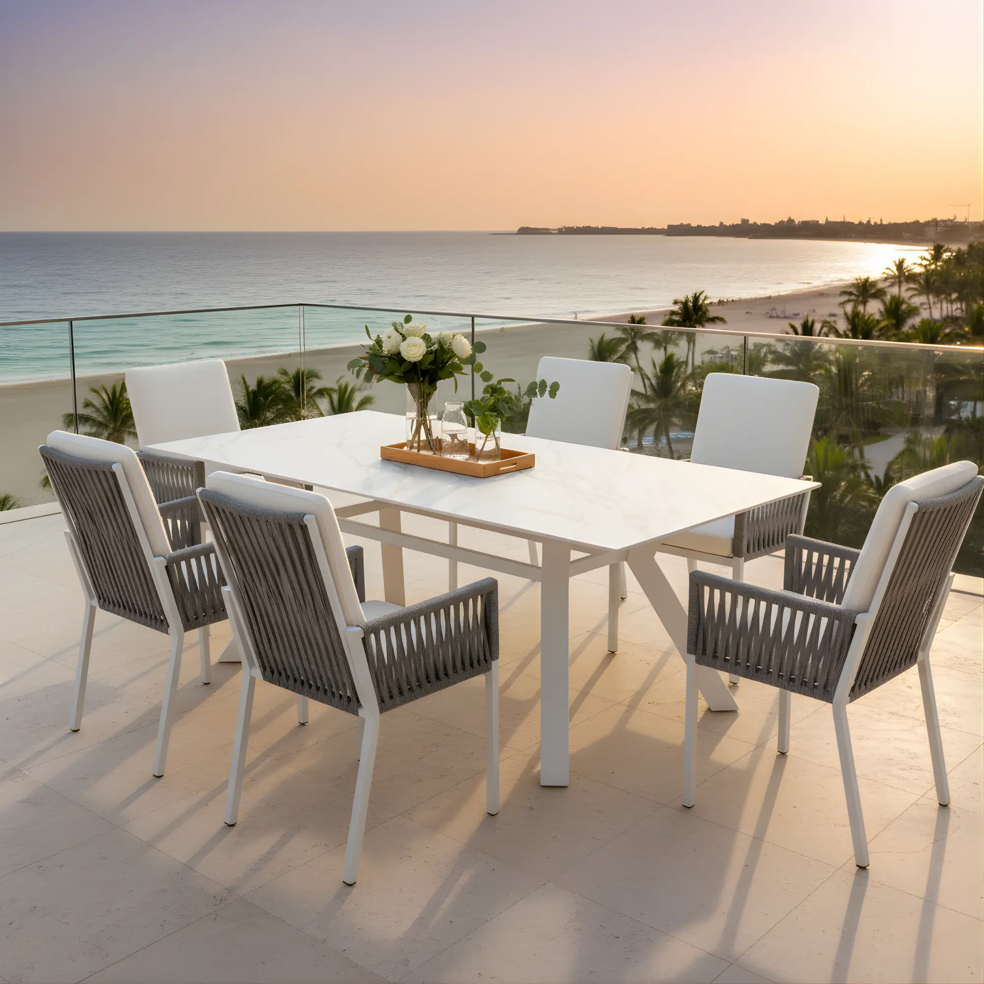 The Veneto 240 represents the excellence of engineering applied to contract outdoor furniture. Its architectural design is supported by a frame of high-purity, non-recycled extruded aluminium, guaranteeing superior robustness and total corrosion resistance. Manufactured entirely at our facilities in Murcia, each piece is meticulously polished to ensure optimum paint adhesion, offering exceptional durability against adverse weather and intensive use.
