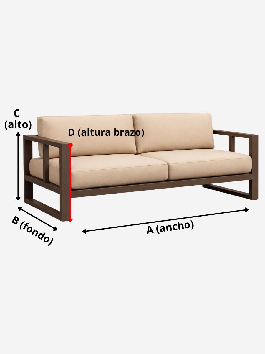 Measure the Width (A): Measure the total length of the sofa from one lateral end to the other. Include the armrests in this measurement.