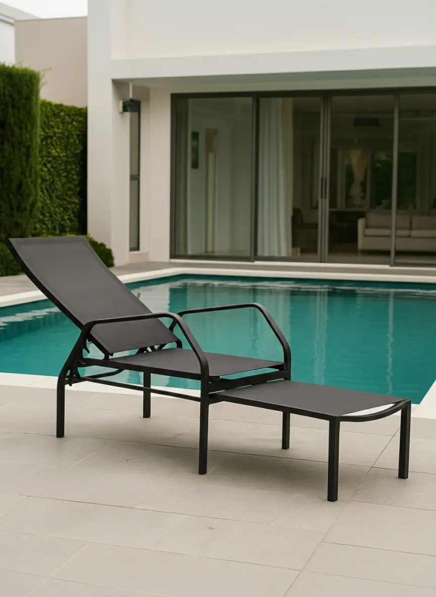 Siena Folding Aluminum Sun Lounger, lightweight, durable, and with a contemporary design. Ideal for terraces, swimming pools, or chill-out areas thanks to its durable structure and reclining backrest.