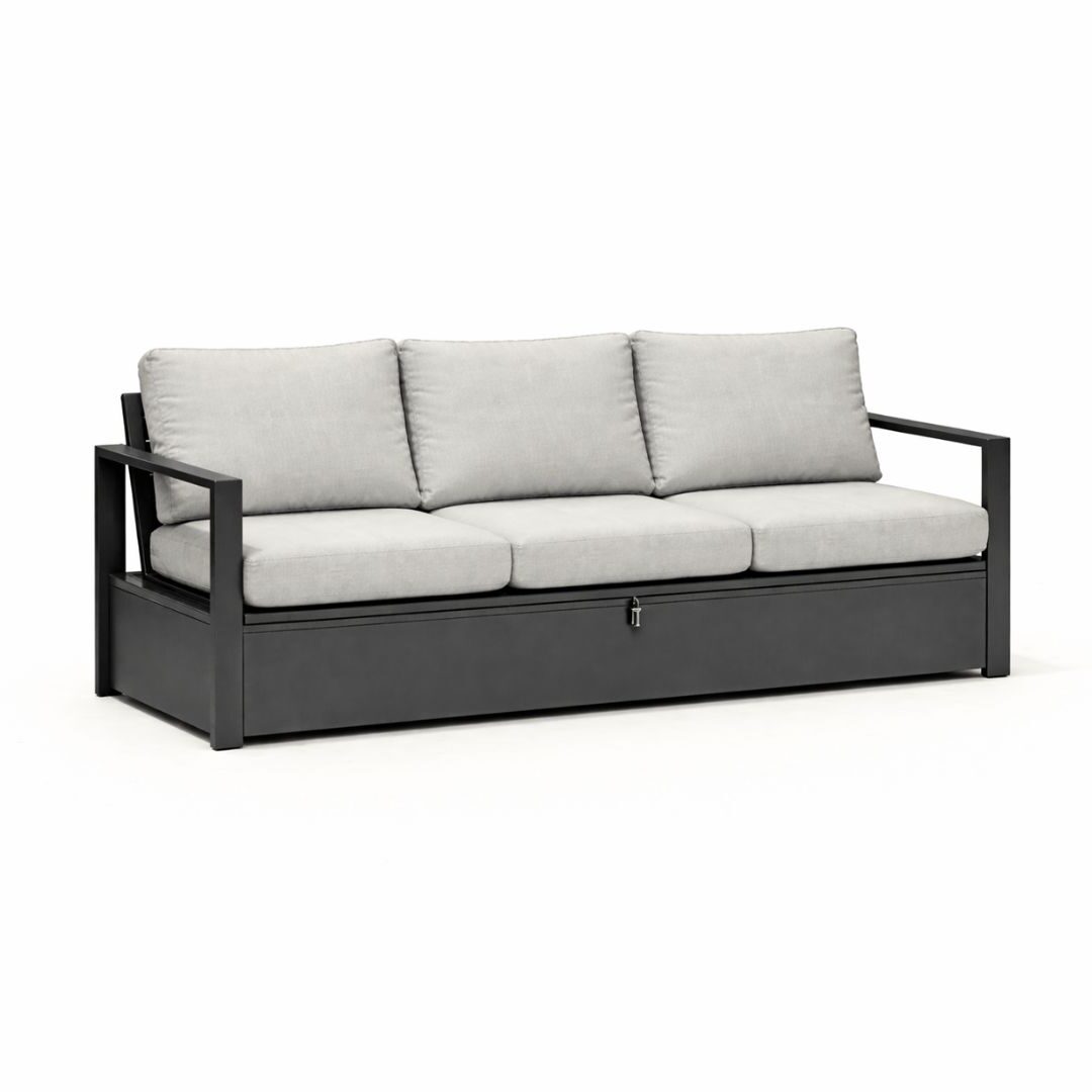 3-seater outdoor sofa with an integrated 100% watertight storage box. Spacious comfort and total protection for your cushions.