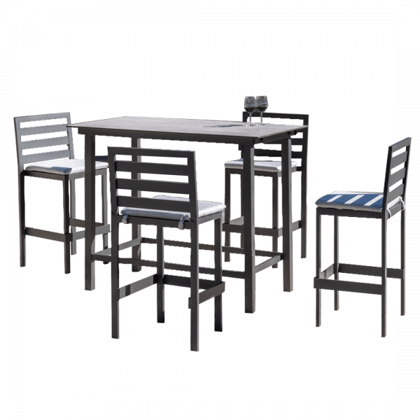 The Tropea HPL-130/Maribor high bar table and stool set combines a resistant aluminium frame with an elegant HPL top, offering durability and style. Perfect for outdoors and indoors, this set is ideal for terraces, bars, and restaurants seeking functionality with a modern and sophisticated design.